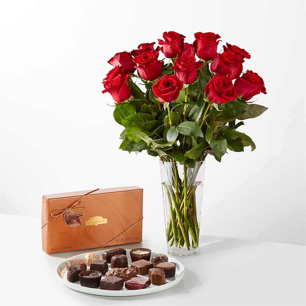 Icons of romance endure for a reason. Dance your way into their heart with the classic beauty of a dozen long–stem roses and the cozy comfort of a lovable Plush Bear or delicious box of chocolates.